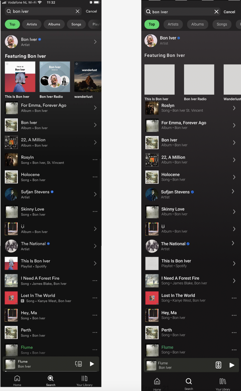 I now notice that the cards for the albums on the top of the home page are slightly bigger than the originals, and that there is some spacing issues with the “Good morning” header and the “music” and “podcasts and shows” buttons.